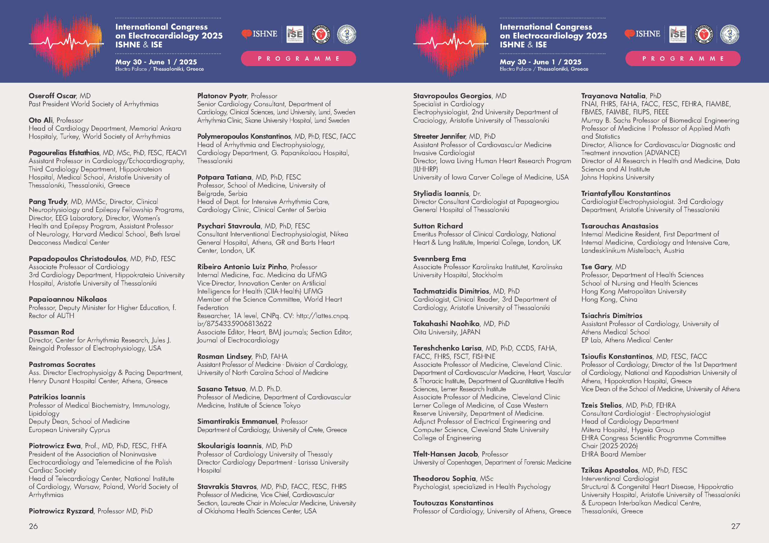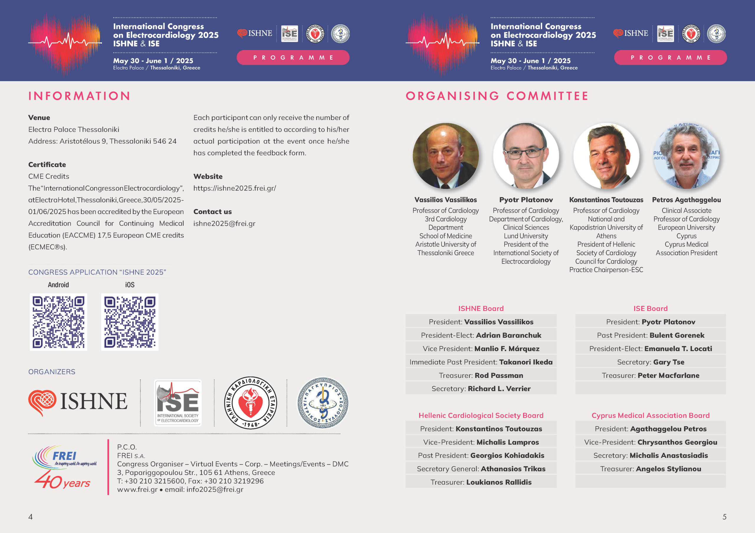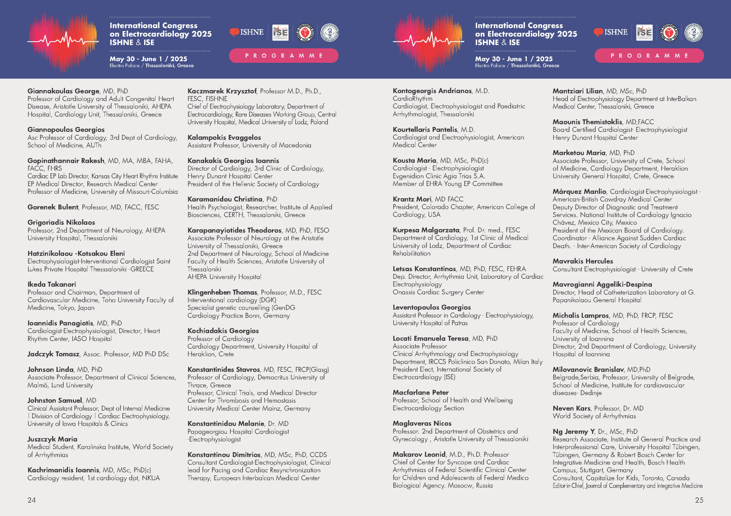The 50th International Congress on Electrocardiology was held from May 30 to June 1, 2025, in the historic city of Thessaloniki, Greece. The event was jointly organized by ISHNE and ISE, in association with the Hellenic Society of Cardiology, the Cyprus Medical Association, and Arrhythmias Update 2025.